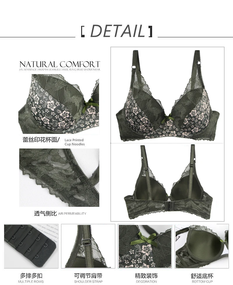 2024 New Thin Mode Cup Push Up Bras Set BCDE White burgundy Beige Black Green Blue Push Up Underwear For Women