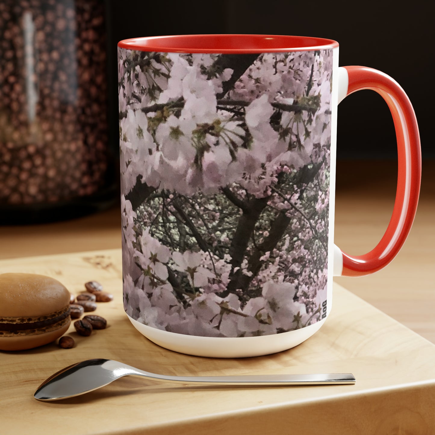 Cherry Blossom Two-Tone Coffee Mugs, 15oz